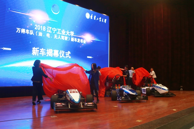9月15日,遼寧工業大學萬得車隊2018賽季新車發布會在遼工大圖書館報告廳舉行,由萬得集團全面支持,遼工大師生自行設計、制作的第七代燃油方程式賽車、第四代電動方程式賽車和第一代無人駕駛方程式賽車精彩亮相。萬得集團副總裁劉勇東、遼寧工業大學副校長劉振安等領導出席發布會并為新車揭幕。